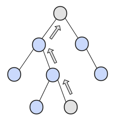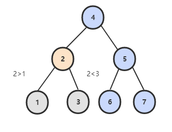 二叉查找树中,两个节点 p, q 的公共祖先 root 满足 root.val >= p.val && root.val <= q.val。