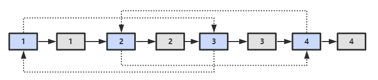 遍历到位置 4 时,该位置上的数为 2,但是第 2 个位置上已经有一个 2 的值了,因此可以知道 2 重复。