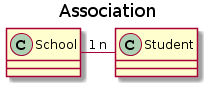 表示不同类对象之间有关联,这是一种静态关系,与运行过程的状态无关,在最开始就可以确定。因此也可以用 1 对 1、多对 1、多对多这种关联关系来表示。比如学生和学校就是一种关联关系,一个学校可以有很多学生,但是一个学生只属于一个学校,因此这是一种多对一的关系,在运行开始之前就可以确定。