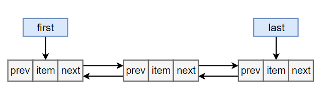 • LinkedList:基于双向链表实现,只能顺序访问,但是可以快速地在链表中间插入和删除元素。不仅如此,LinkedList 还可以用作栈、队列和双向队列。