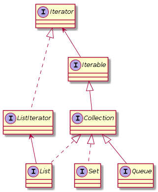 Collection 实现了 Iterable 接口,其中的 iterator() 方法能够产生一个 Iterator 对象,通过这个对象就可以迭代遍历 Collection 中的元素。