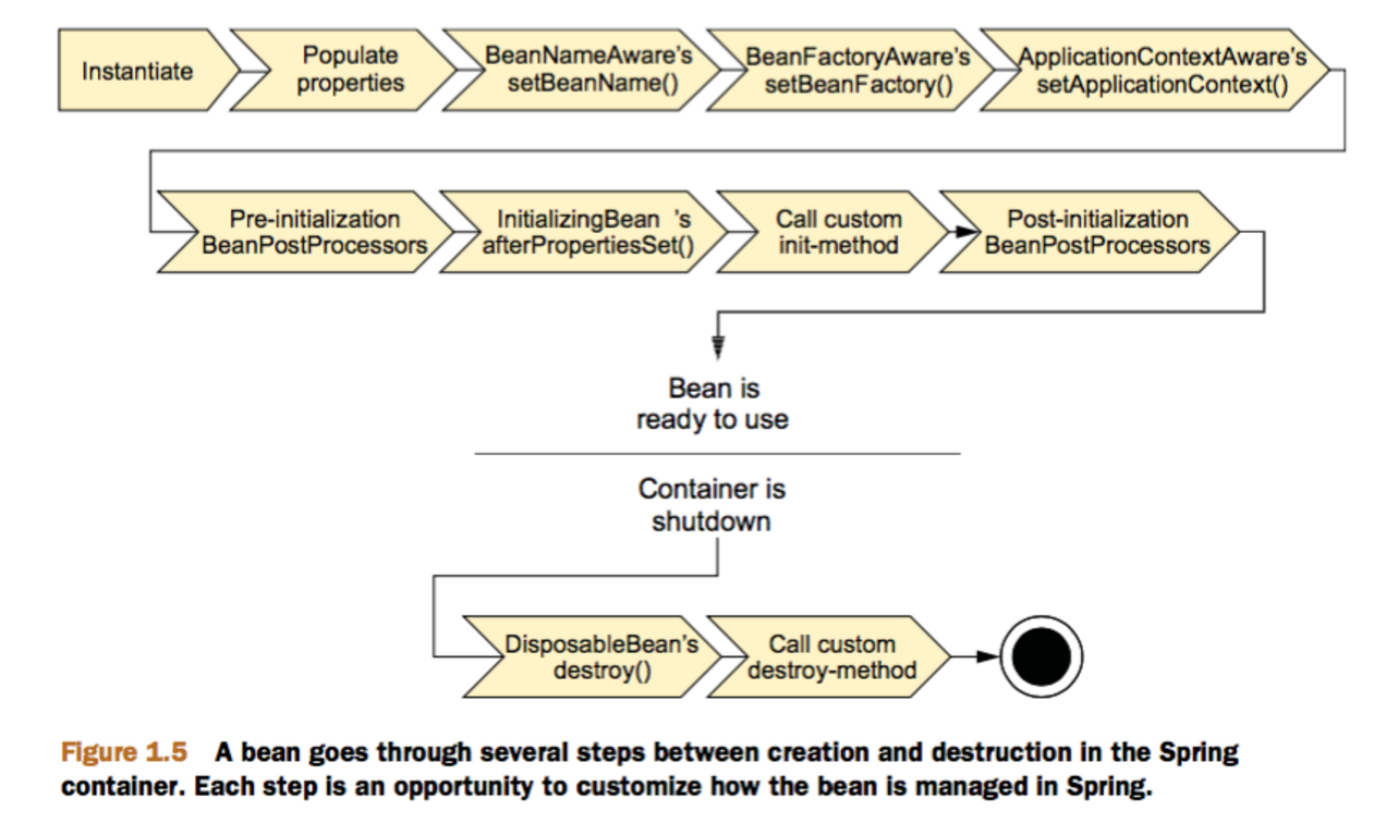 • 当要销毁 Bean 的时候,如果 Bean 在配置文件中的定义包含 destroy-method 属性,执行指定的方法。